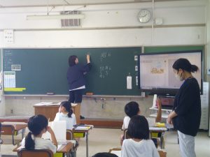 2年生は国語科の学習を頑張っています。今日は新しい漢字を学んでいました。「食」についてでは、「食べる、食う、食事、給食等々、」の意見が出されました。「食」使った読み方がたくさんありますね。一生懸命に考えている姿が良いですね。