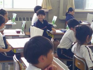 1年生はタブレット学習にチャレンジします。今日は、電源を入れて、使ってみます。「この白いところが電源だよ」「そっと開けよう」「どっちが下かな」等々、考えながら挑戦していました。これから、学習でたくさん使ってくださいね。
