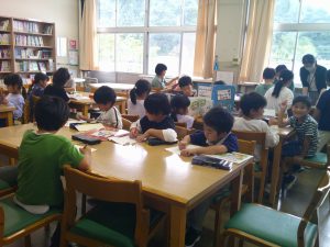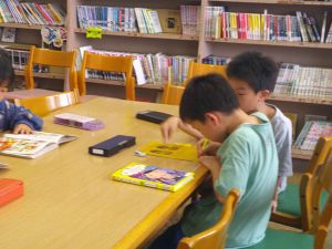 1年生は読書の時間を楽しんでいます。今日は、司書の先生もおられたので、じっくりと読書を楽しみました。1年生の目標、40冊を読み終えてゴールドカードになった友達もいましたよ、1年生は、読書が大好きですね。