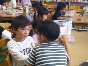 2年生は国語の学習を頑張っています。今日は、仲間の漢字を集めていました。「兄、弟」「姉、妹」「父、母」等々。みんなで楽しみながら、意味を考えて学習を進めていました。