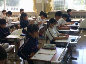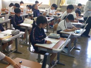 3年生は国語の学習を頑張っています。今日は、書写の時間でした。一字一字をしかりと確認しながら書いていました。先生の話をしっかりと聞いて、頑張っています。