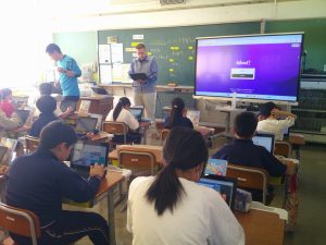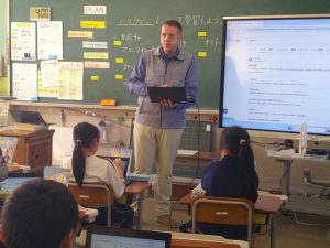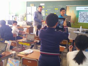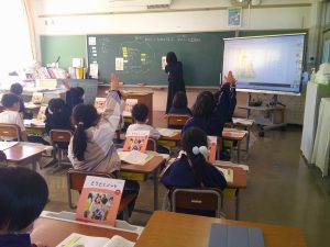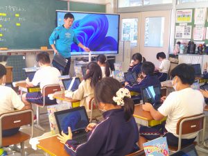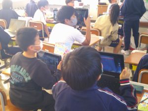 3年生は外国語活動を頑張っています。ハロウィンに関する言葉を英語で表現することを学んでいました。タブレットで調べたり、言葉を打ち込んだりして頑張っていました。