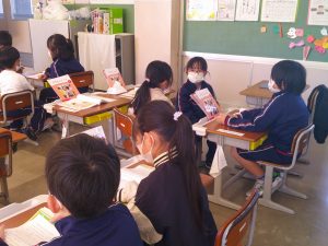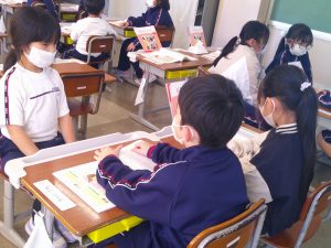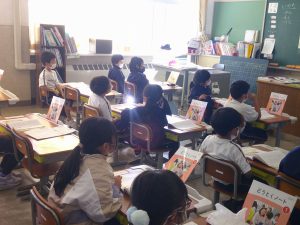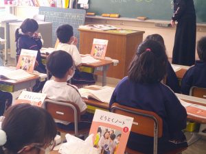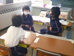 1年生は道徳の学習を頑張っています。今日は、「わたしがおねえさんよ」(生命の尊重)について学んでいました。おなかの大きなお母さんに「わたしがおねえさんよ」と伝えたときの気持ちをみんなで」話し合っていました。グループの話合いも頑張っていますよ。