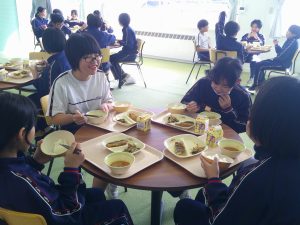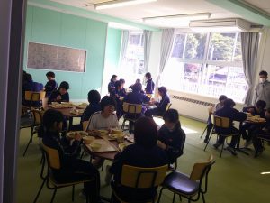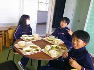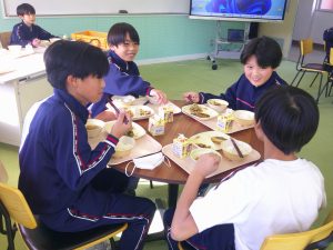 5年生は、学級力を高めることに挑戦しています。今日は、学級力を高めるために、特別活動室で給食を食べました。特別活動室は、二学期から、いろいろな学習や活動ができるように整備した教室です。子供たちは、ちょっと違う雰囲気の中、楽しそうに給食を食べていました。なかよしの和が深まりましたね。