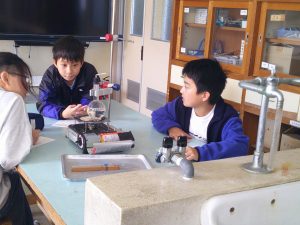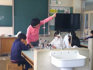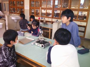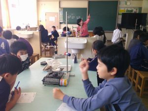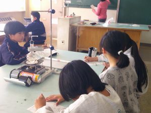4年生は理科の学習を頑張っています。今日は「気体と液体」の学習です。グループになって、水蒸気が発生する様子をじっくりと観察していました。気がついたことをワークシートにまとめていました。