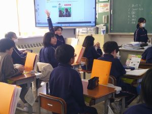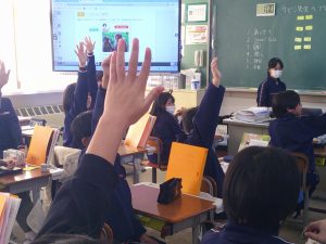 5年生は外国語の学習を頑張っています。今日は、「何が好きか」を英語で聞き合っていました。ALTの先生とも積極的に会話している姿がよかったです。見ているみんなも応援していました。