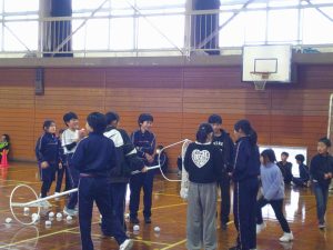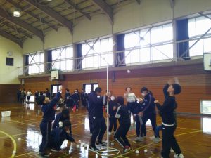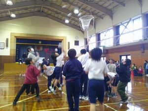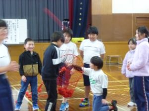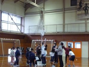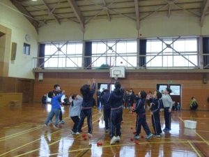 今日のなかよしタイムは、全校で玉入れ大会を行いました。保健体育委員会が企画してくれました。縦割り班で協力してなかなか入らない玉をどうやって入れるかが大事でした。チームワークが大切ですね。優勝は6班でした。おめでとうございます。