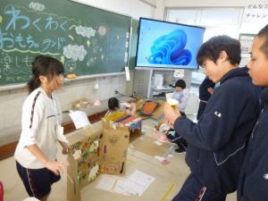 今日は2年生が生活科でがんばってきた「わくわくおもちゃランド」へご招待の日です。学校のみんなが、2年教室、はまなす教室に集まりました。2年生がつくった楽しいゲームに、みんな夢中でした。本当に楽しかったです。