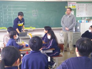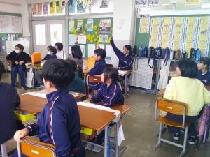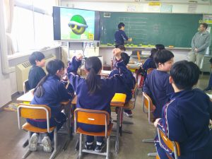 5年生は外国語の学習を頑張っています。今日は、グループに分かれて、英語のクイズに挑戦していました。これまで学んできたことを生かしてクイズに答えていました。みんなで考え合っている姿が良いですね。