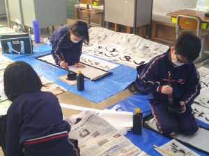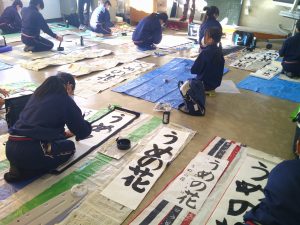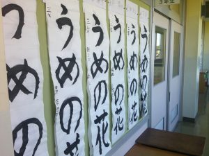 3年生は書初めの練習を頑張っています。書初めは、「うめの花」です。3年生になって初めての毛筆に挑戦しています。一字一字丁寧に練習していました。力強い字になってきましたね。