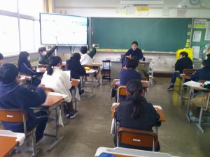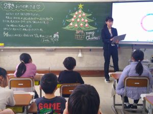 2年生は、クラスみんなで2学期の振り返りをしていました。クラスのめあてにそって、一つずつできたことや頑張ることを確認していました。花丸がたくさん付いていました。頑張りましたね。