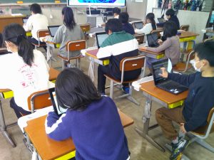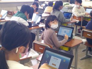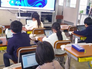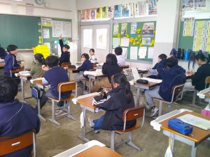 3年生は、今学期最後の学習のまとめを頑張っていました。タブレットを使って、自分の進度に合わせてドリルを進めていました。集中して学習をしています。3学期も頑張りましょう。
