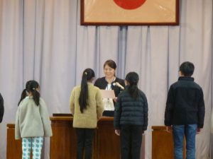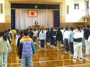 今日は2学期の終業式でした。2学期はいろいろなことがありました。学習発表会、完工式、マラソン記録会、道徳の授業等々。宮田っ子は一生懸命励んでいました。3学期もみんなで協力して頑張りましょう。