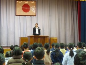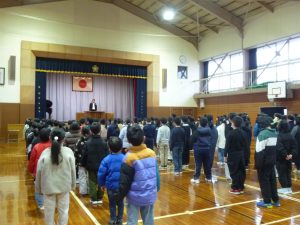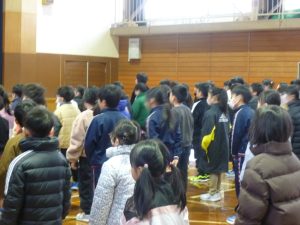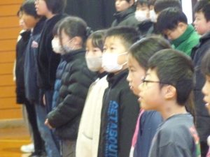 3学期のスタートは、始業式の後、書初大会です。1,2年生は教室で硬筆を頑張りました。3,4,5,6年生は、体育館で毛筆を頑張りました。丁寧に心を込めて書いていました。よく頑張っています。