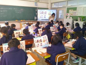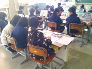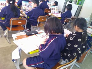 3年生は万葉学習を頑張っています。グループに分かれて、万葉集のことや万葉かるたについてプレゼンを作成していました。グループで一生懸命話っている姿が印象的でした。どんなプレゼンになるのか楽しみですね。