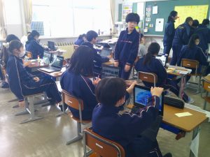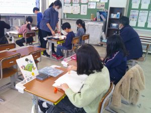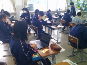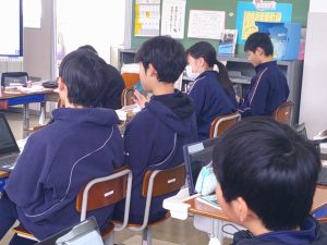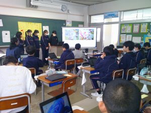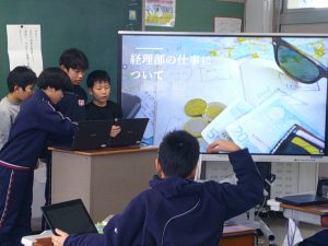 6年生は、宮田ハマナス会社の各部署に別れて、これまでの取組を発表する準備をしていました。パワーポイントを活用して、工夫を凝らして発表の準備をしています。授業参観で発表するのですね。頑張ってください。