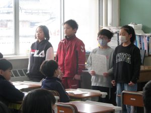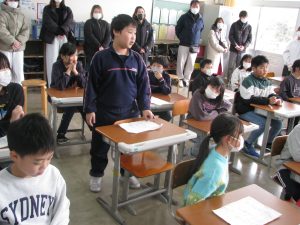 今日は、学習参観でした。今年度最後の学習参観です。一人一人が成長した姿を見てもらうことができました。足下の悪い中、参観に来ていただき、ありがとうございました。