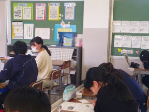 教室で、感想をまとめていました。楽しい学習をしていますね。