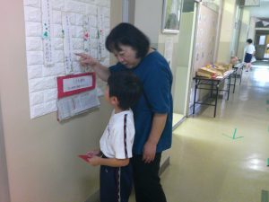 宮田っ子は、俳句や万葉集の暗唱に挑戦しています。廊下には、大伴家持の短歌「立山に 降りおける雪を 常夏に 見れども飽かず 神からならし」の掛け軸もあります。全学年が休み時間を利用して、チャレンジしています。1学期の間でたくさん覚えましたね。