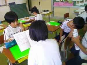 8/30 4年生 総合的な学習の時間 2024年8月30日 2021年入学(5年生), 活動の様子, 学校からのお知らせ 4年生は、総合的な学習の時間のテーマでもある「持続可能な環境を目指して」について、グループで話っていました。一人一人がノートに書いてきた意見を基に話し合いを進めていました。 Post Views: 173
