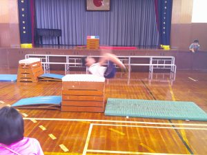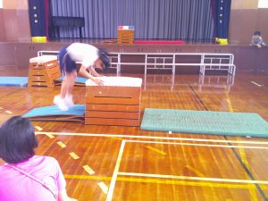 5年生は学習発表会に向けて、跳び箱とマットの練習をしていました。「はい」と手を挙げて、演技する姿がよかったです。難しい「頭はねとび」の技も上手になりました。準備や片付けも自分たちで頑張っています。当日が楽しみです。頑張って練習を続けてください。