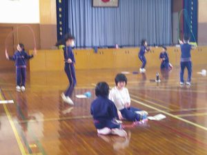 4年生は体育の学習を頑張っています。今日はなわとび集会に向けて、個人の技を練習していました。二重跳び、二重あや跳び、後ろあや跳びなどなど、自分の目当てに向かって一生懸命練習していました。なわとび集会に向けて頑張ってください。