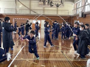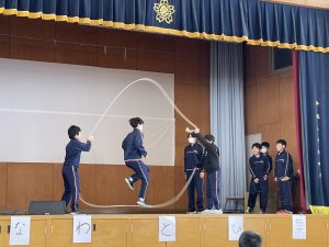 今日は、保健体育委員会が企画してくれた「なわとび集会」がありました。各学年の代表者による模範演技、たてわり班対抗八の字合戦を行いました。模範演技は、あや跳び、二重跳び、二重あや跳び、二人二重跳び、三重跳び、ダブルダッチ等々、素晴らしい演技を見せてくれました。素晴らしかったです。八の字合戦では、休み時間を使ってたてわり班で一所懸命練習してきました。どの班も練習した成果を発揮することができました。みんなの頑張りが伝わってきました。
