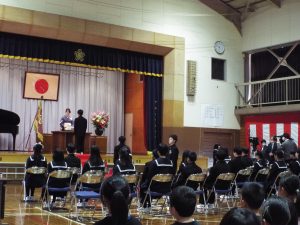 今日は、卒業証書授与式でした。天候にも恵まれ、式を挙行することが出来ました。在校生は心を込めた別れの言葉と歌で式に臨みました。卒業生は立派に卒業証書を受け取り、立派に巣立っていきました。今日まで応援してくださった皆さんに感謝申し上げます。