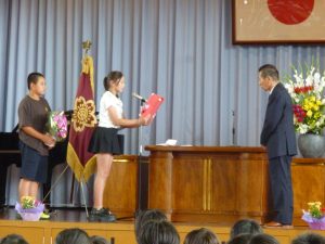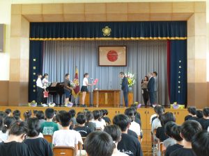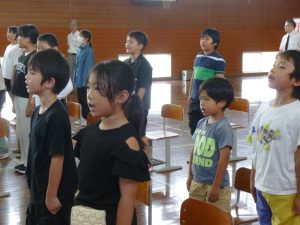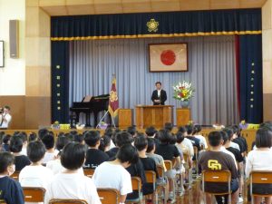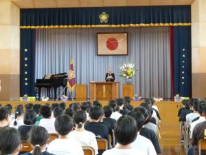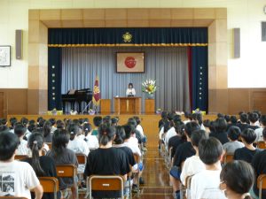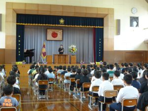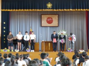 9月29日に完工式を行いました。来賓の方々や工事をしてくださった方々をお招きしました。児童からは感謝の言葉やフラワーアレンジメントを贈りました。今日は、感謝の気持ちでいっぱいでした。みんなで完工を喜び合いました。今日からは、感謝の気持ちを忘れずに進んで行きます。
