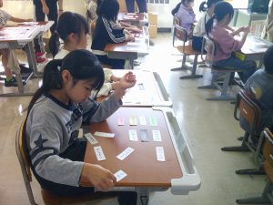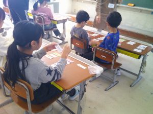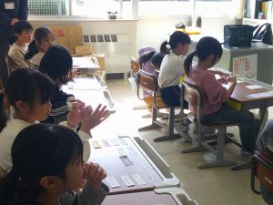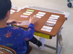 2年生は、心の授業に挑戦しました。自分の気持ちを言葉のカードから選びます。「こんな時はどんな気持ちかな」の問いかけに、自分の気持ちに合うカードを選んでいました。カードが無いときは、自分の気持ちを言葉にしていました。頑張っていましたね。