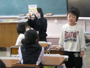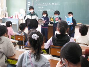 振り返りでは、「1年生には、面白いと思ったところを短い文で紹介した方が、よく伝わった」「1年生でもわかる言葉で伝えた方がよい」などと話し合いました。