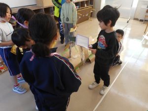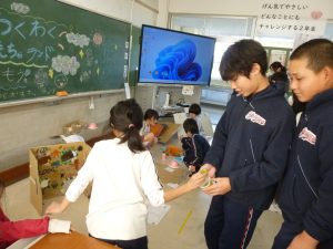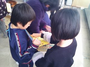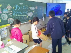 今日は2年生が生活科でがんばってきた「わくわくおもちゃランド」へご招待の日です。学校のみんなが、2年教室、はまなす教室に集まりました。2年生がつくった楽しいゲームに、みんな夢中でした。本当に楽しかったです。