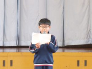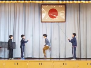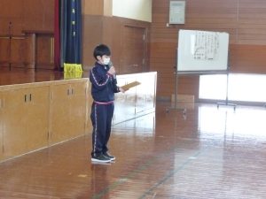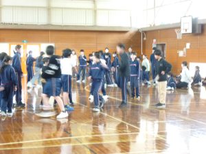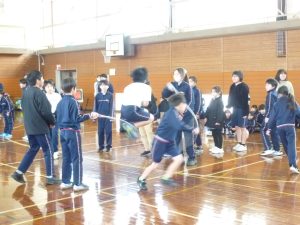 次に、縦割り班対抗8の字合戦では、一人一人が練習の成果を発揮しようと頑張りました。特にチームワークも大切です。どの班も力を合わせて頑張りました。