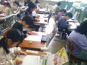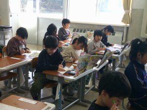 教室で、感想をまとめていました。楽しい学習をしていますね。