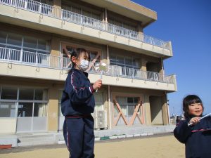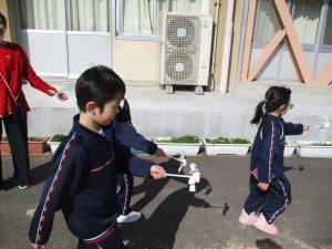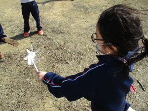 1年生は生活科の学習を頑張っています。今日は「かぜとあそぼう」で、風車と飛行機づくりに挑戦しました。外で思い切り試して、遊んでいました。楽しかったですね。