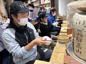 束ねて、わらで縛る作業が難しく、悪戦苦闘しましたが、