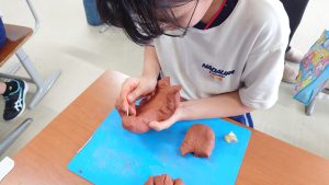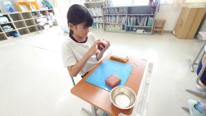 3・4年生は、講師の方に教えてもらいながら、沖縄の守り神であるシーサーづくりに挑戦しました。