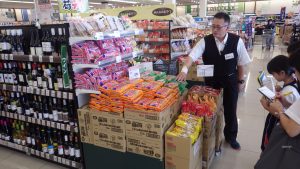 最後に、売り場全体での工夫や努力を教えていただきました。お客さんが、いつでも商品を取りやすいように陳列を工夫したり、目当ての商品をすぐに探せるよう、看板を設置したりしていることを学びました。また、買い物のついでに宅配便の受取ができたり、ペットボトルなどの回収をしたりしていることも知りました。さらに、スーパーマーケットへ行けない方に食材を届ける「とくし丸」というサービスも行っているとのことでした。