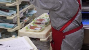 精肉売り場では、―20度の冷凍庫で鮮度を保っていることを学びました。パック詰めをする際は、機械で重さを量って値段のシールを貼っているので、どれもグラム当たりの値段は同じだそうです。