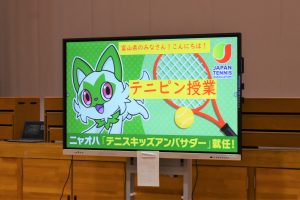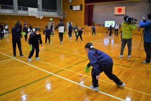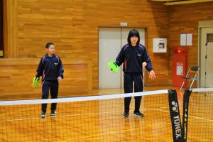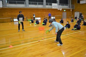 「能登半島地震の被災地の子供たちに元気を与えたい」と、山梨学院短期大学助教授の今井茂樹先生が講師として来校し、テニピンの楽しさを教えてくださいました。