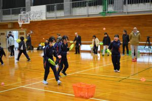プレゼントしていただいた用具は、授業や休み時間に大切に使いたいと思います。これからも、みんなでテニピンを楽しみながら、体力の向上を図っていきたいと考えています。