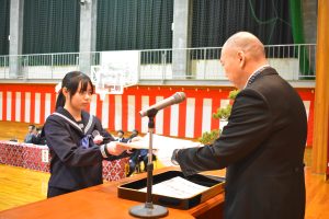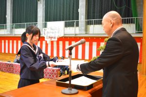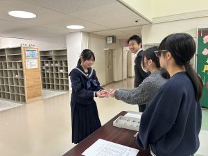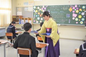 教室に戻り、担任の先生から一人一人に最後のメッセージと卒業証書を受け取りました。