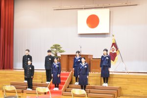 卒業生の呼びかけでは、6年間の思い出を振り返り、「変わらないもの」を合唱しました。共に過ごした友達に対する思いを込めて歌いました。澄んだ歌声が体育館に広がり、会場は感動に包まれました。