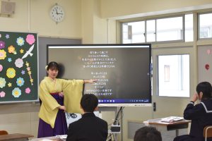 「学びフェスタⅠ」の経験を生かし、内容をさらに見直したうえで、1月31日の「学びフェスタⅡ」に臨みました。当日は、ふるさと学習講師の方々や家族、地域の方々に来校していただき、ふるさと灘浦のよさについて学んだことを発表しました。教えていただいたふるさと学習講師の方々へ、感謝の言葉をしっかりと伝えるとともに、一年を通して学んだことを改めて振り返る姿が見られました。
