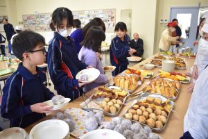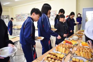 ドキドキ、ワクワクのバイキング給食を、全校のみんなで楽しみました。