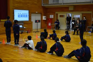 来賓や保護者の方々、教職員も参加し、リズムに乗ってジャンプしたり、