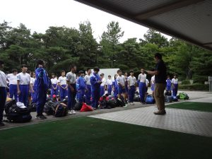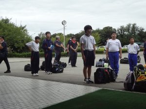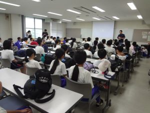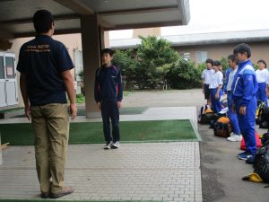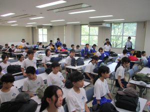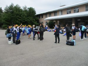 『到着式』では3校がそろい、お世話になる施設の方に挨拶をしました。