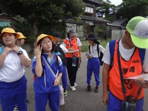 見慣れないコマ地図に戸惑いながらも、友達と楽しそうに歩く子供たち。