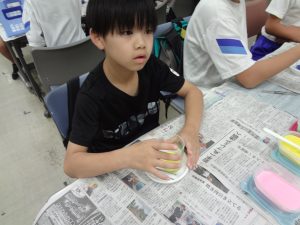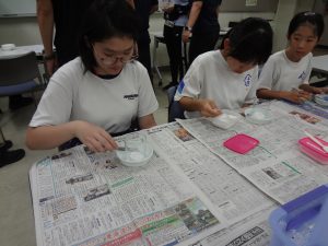 前半は窓ふき、後半は壁のペンキ塗りを行いました。子供たちは、汗をかきながらも一生懸命取り組んでいました。楽しそうに活動する姿や、てきぱきと作業を進める姿がとても印象的でした。