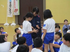 まずはボディーパーカッションです。Adoの曲「新時代」に合わせて、力強く音を鳴らしました。